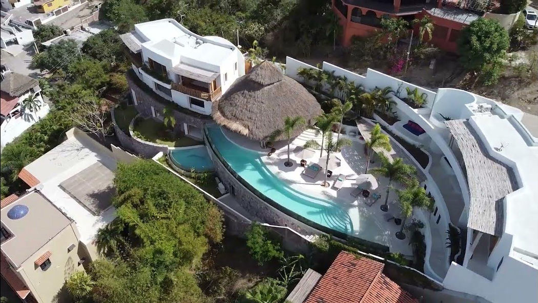 This luxurious estate overlooks the bay of Tenacatita. It boasts a plethora of amenities and modern comforts, not one, but two heated pools, a game room, a massage room and yoga space, a poolside bar with lounge area, and an imposing palapa real covering the common area living space among other things.